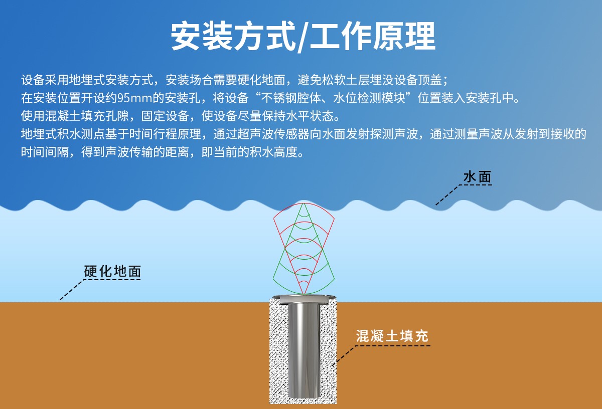 | 續(xù)航時(shí)間 | 無積水情況下,可連續(xù)工作5年 |